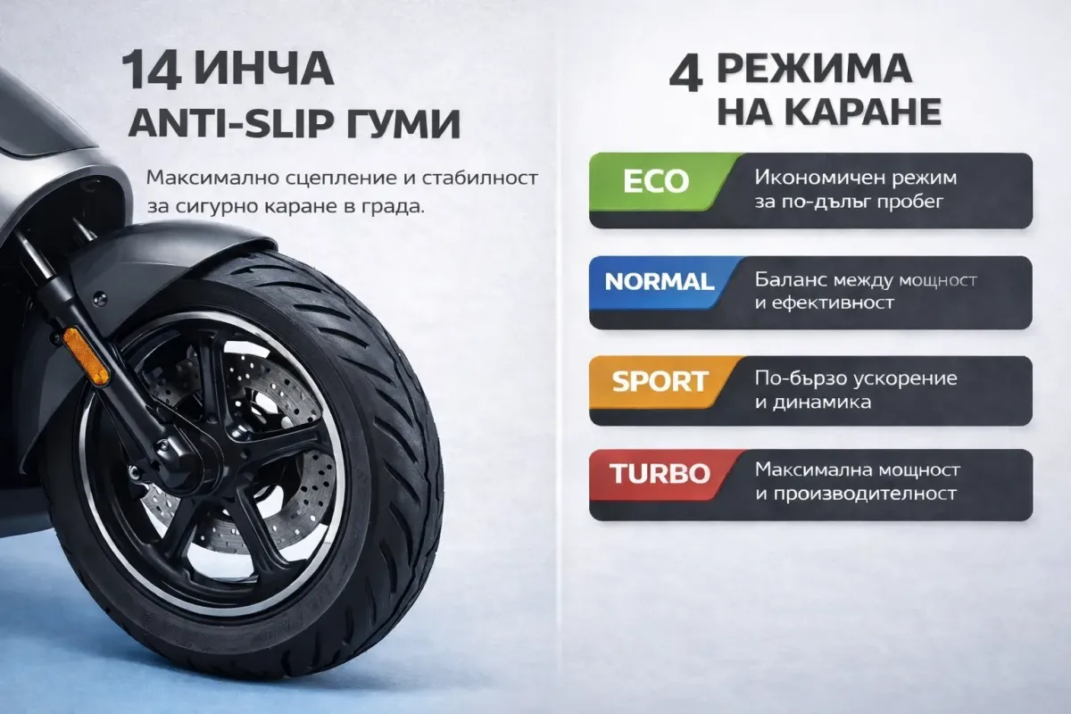 Пробег: До 140 км (в зависимост от режима на каране)